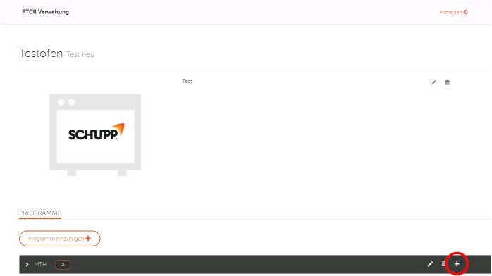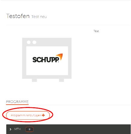 Eine weitere Möglichkeit zum Anlegen eines Brennprogramms ist über den Ofen selbst. Dazu klicken Sie auf das Bild des Ofens und können nun über den Button „Programm hinzufügen“ ein neues Programm anlegen.